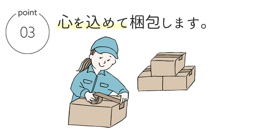 スタッフがひとつひとつ心を込めて丁寧に梱包します。